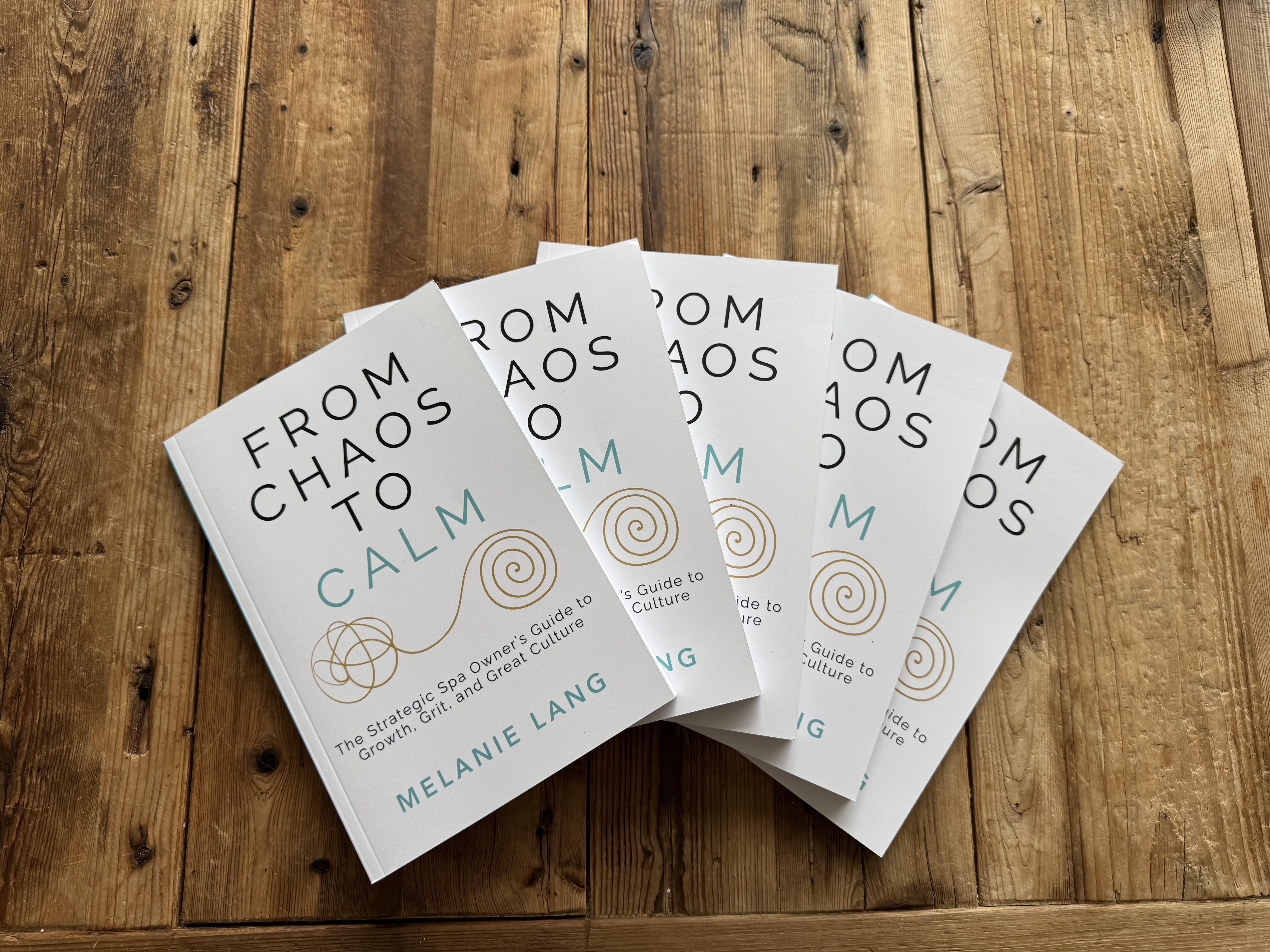A digital copy of Melanie Lang’s book From Chaos to Calm, The Strategic Spa Owner's Guide to Growth, Grit, and Great Culture